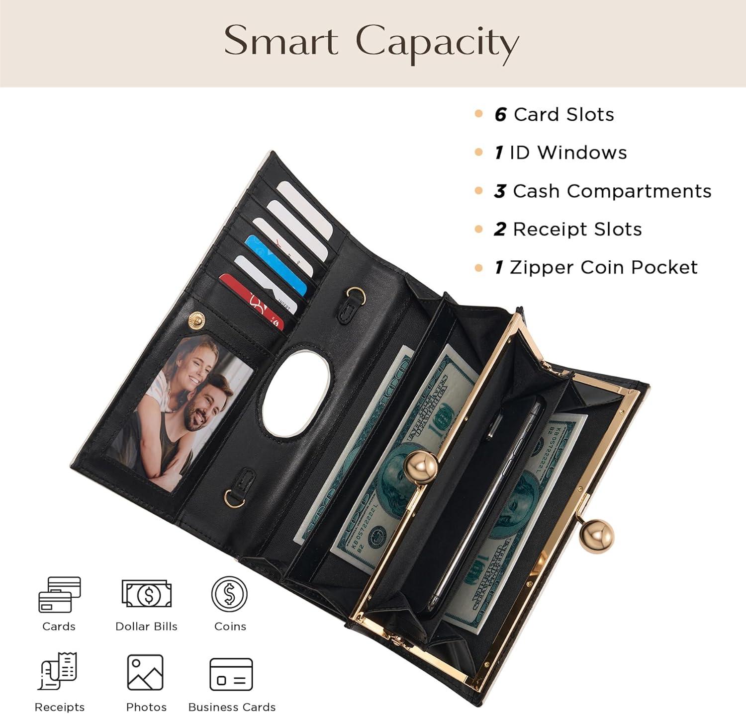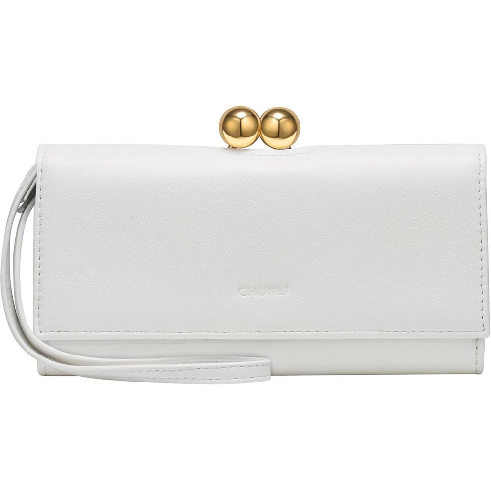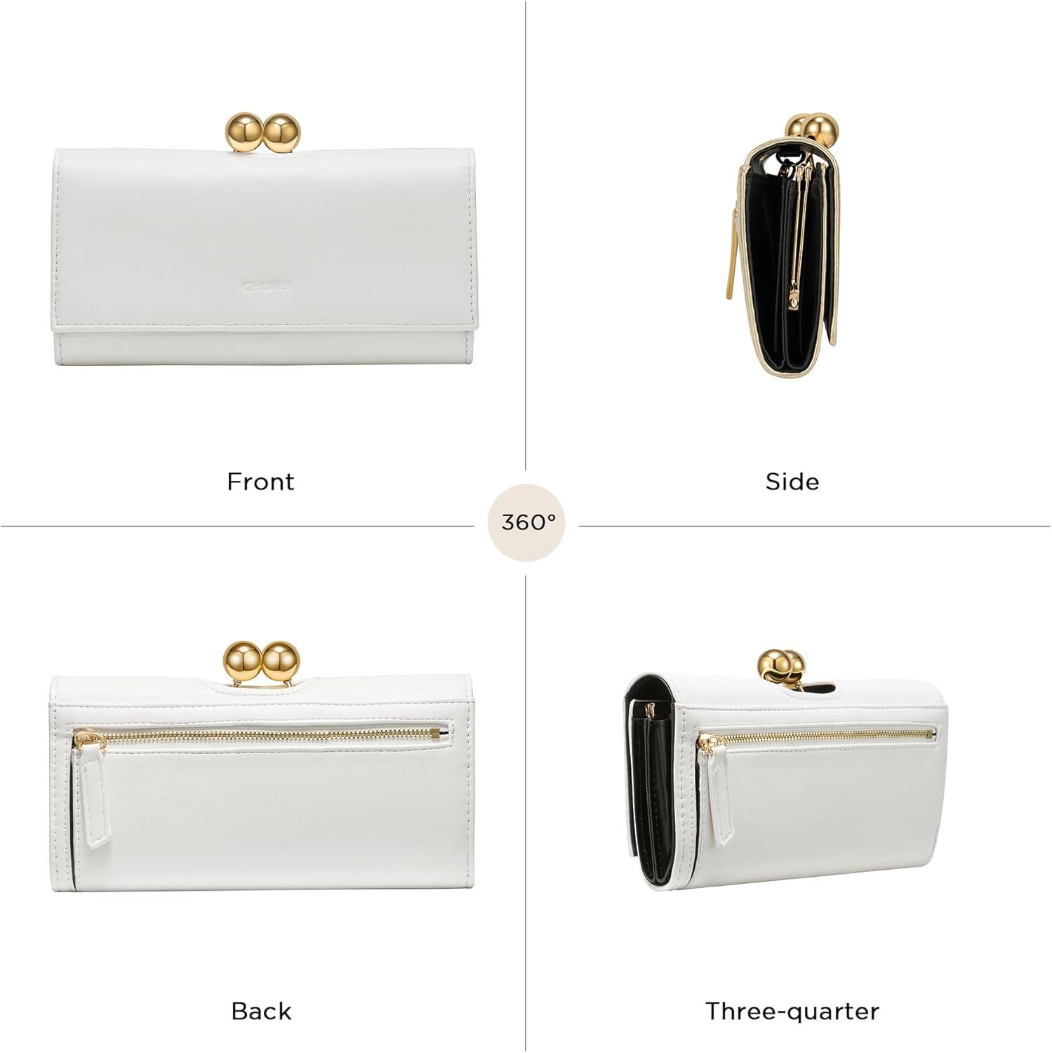 3-in-1 Evening Clutch Wallet for Women, 7 Card Slots, Convertible Purse with Detachable Strap as Shoulder Bag/Clutch/Wristlet(White)