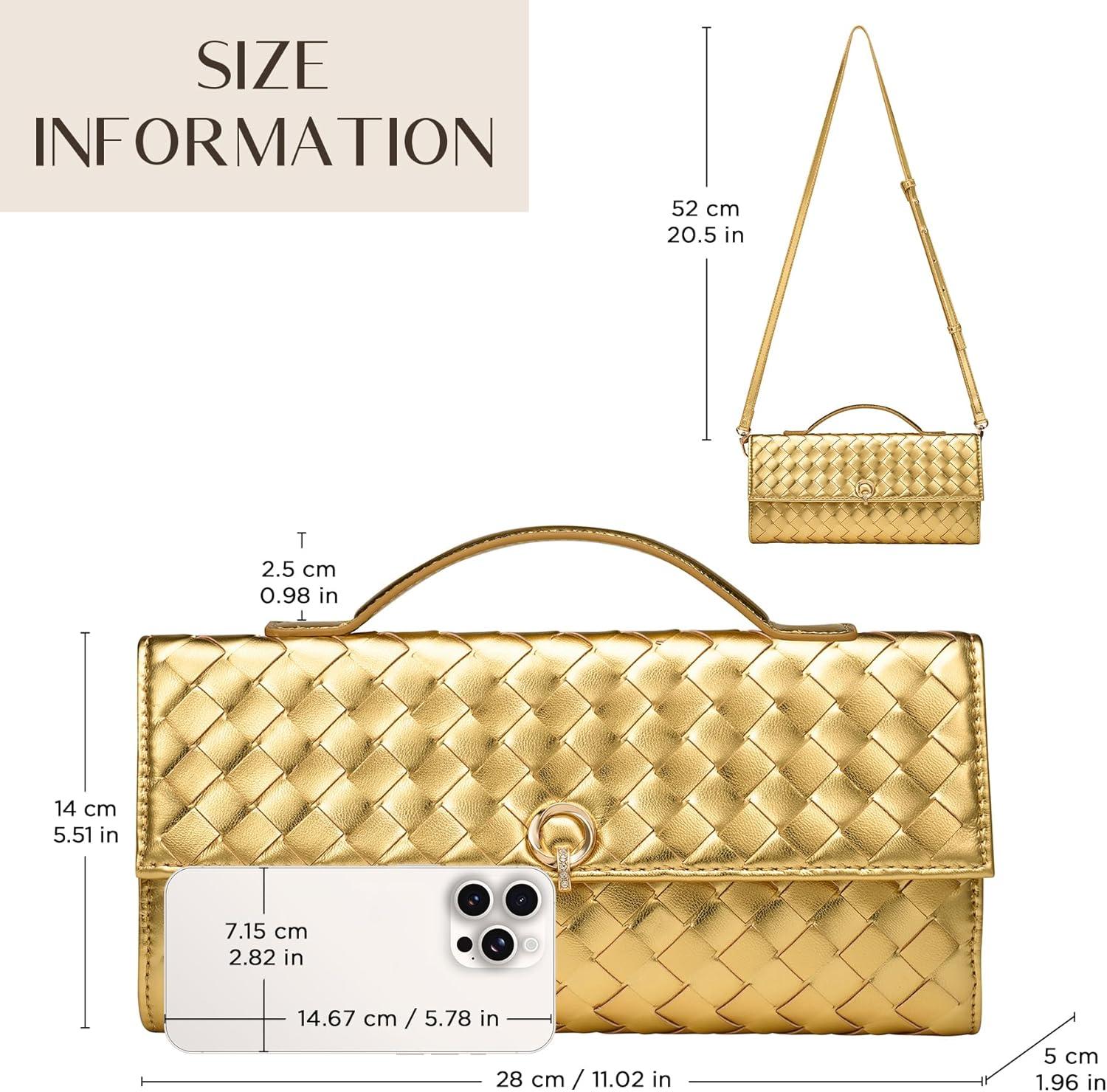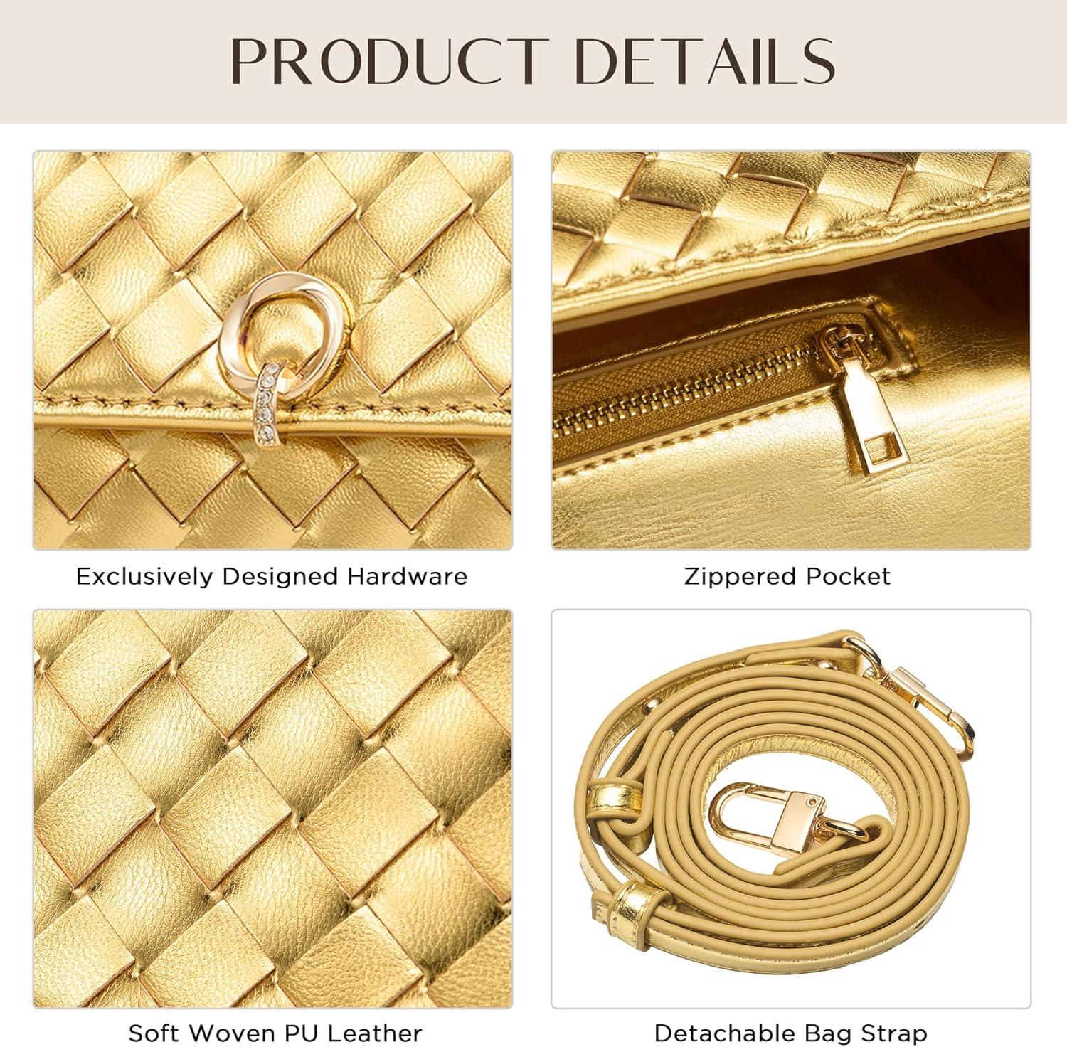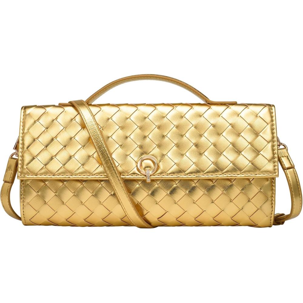 imageCHUNLI Dressy Woven Clutch Purses for Women Designer Crossbody Bags with Top Handle Formal Evening PU Leather HandbagGold