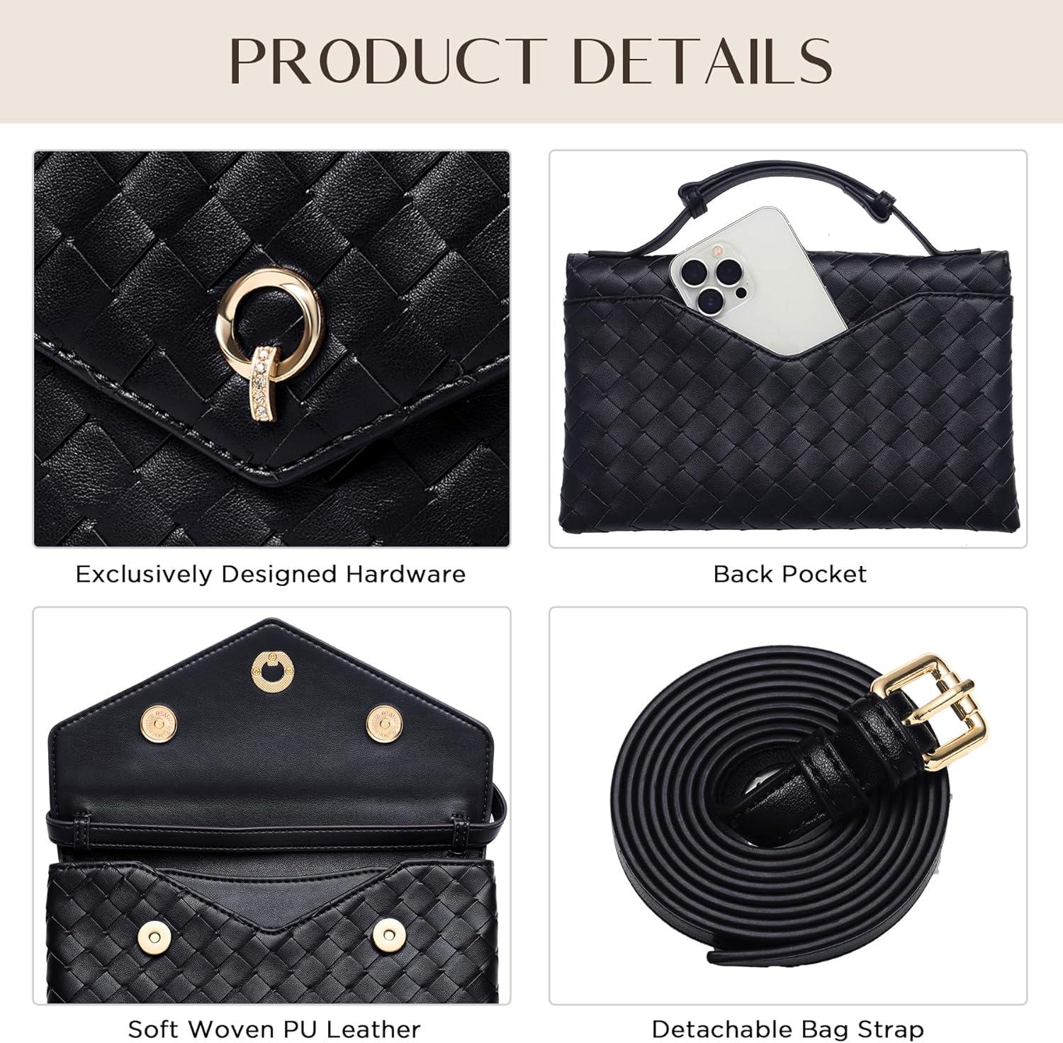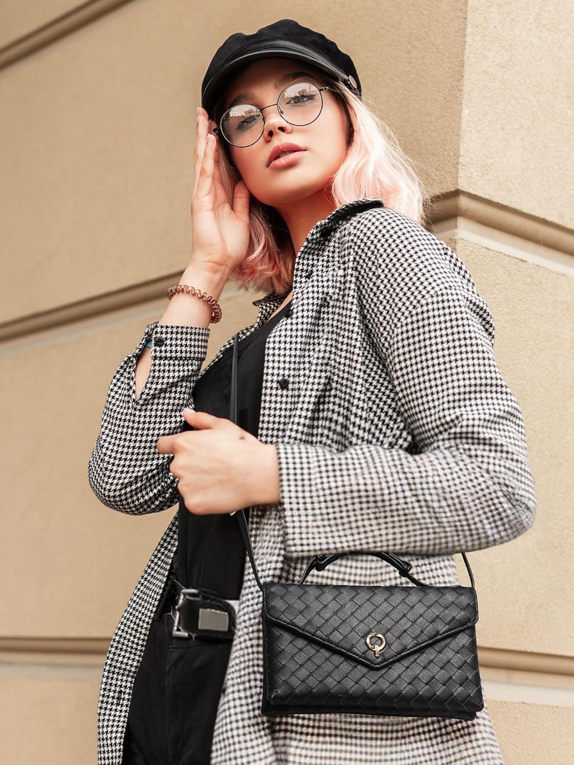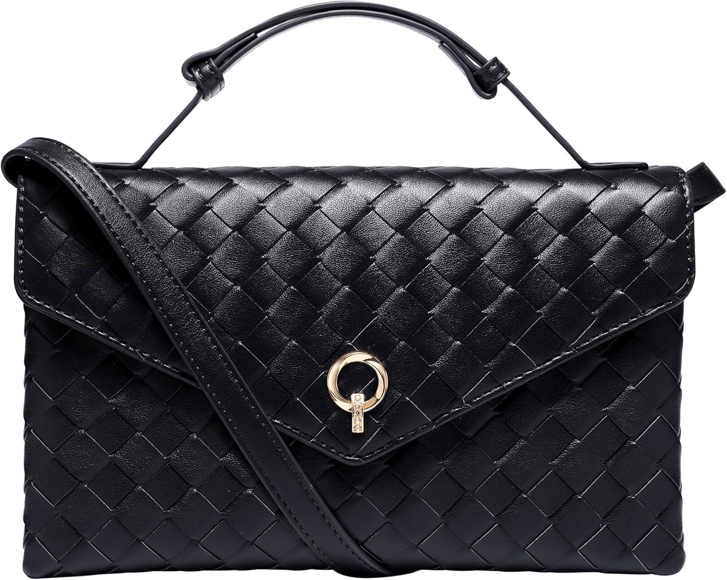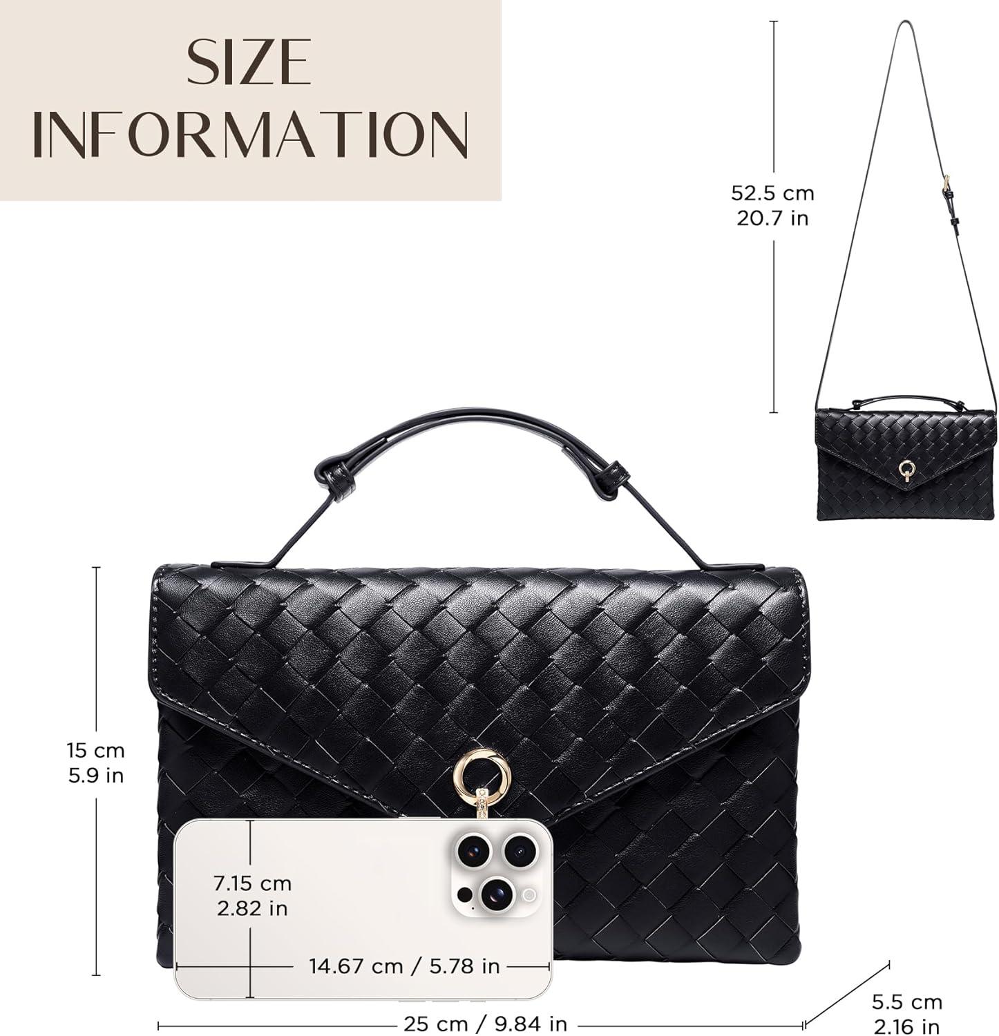 CHUNLI Woven Clutch Purses for Women Formal Evening Crossbody Bags with Adjustable Top Handle PU Leather Envelope Handbags(Black)