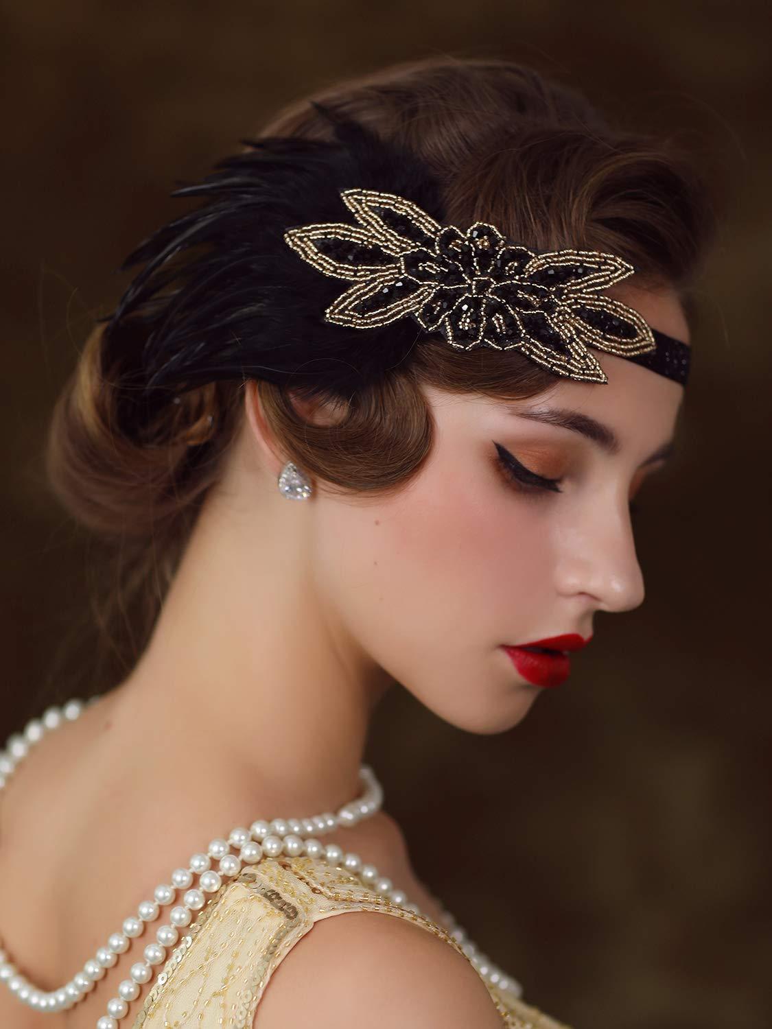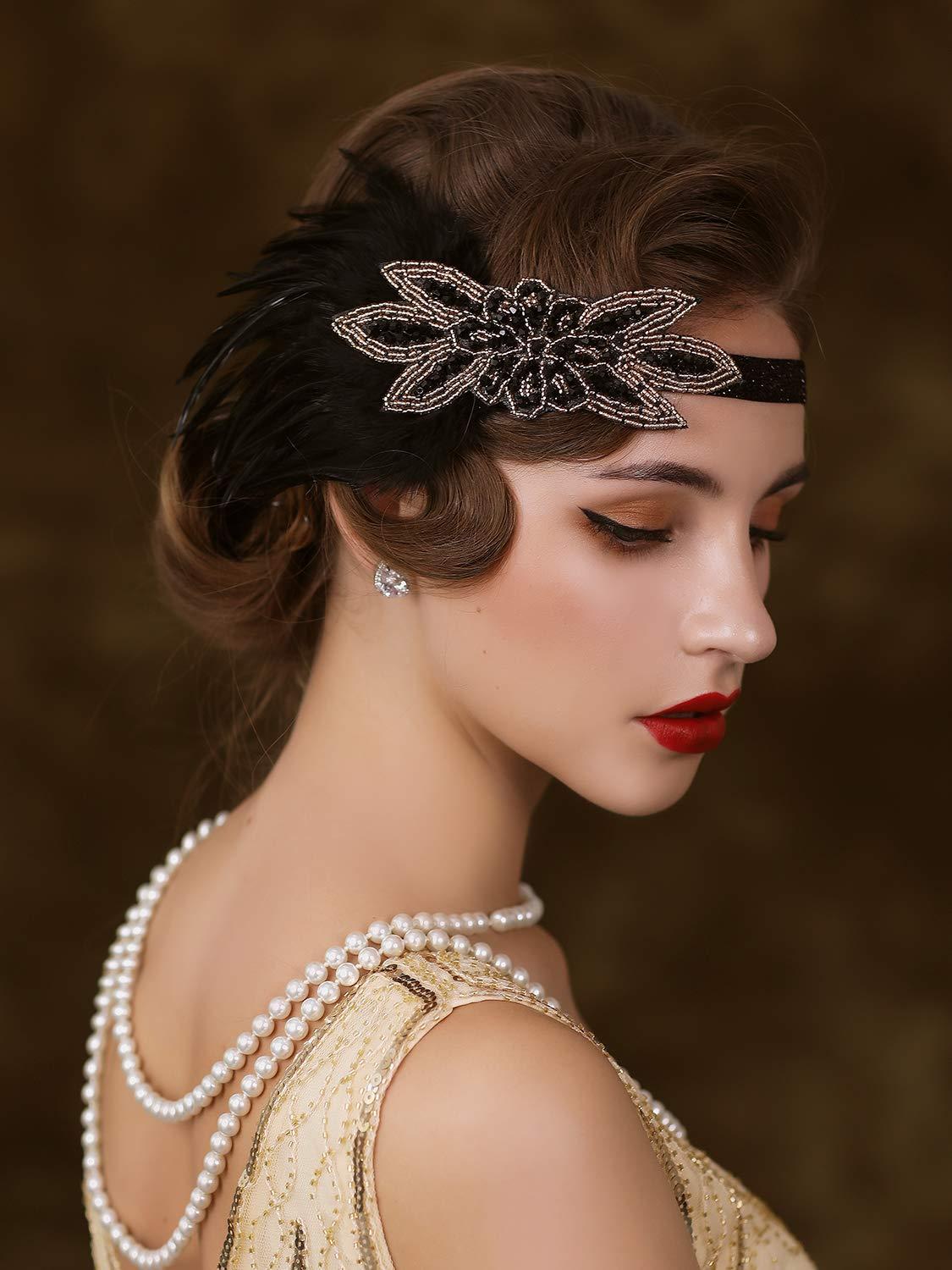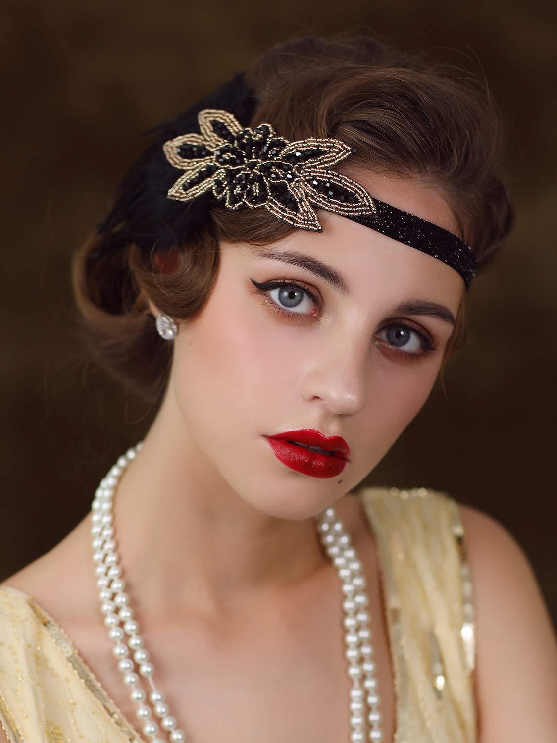 【Feature】Retro design with delicate handcraft compliments a much more comfortable and pleasant wearing experience. A stunning great gatsby party costume hair accessories, 1920s headband with feather, extremely impressive and attractive.