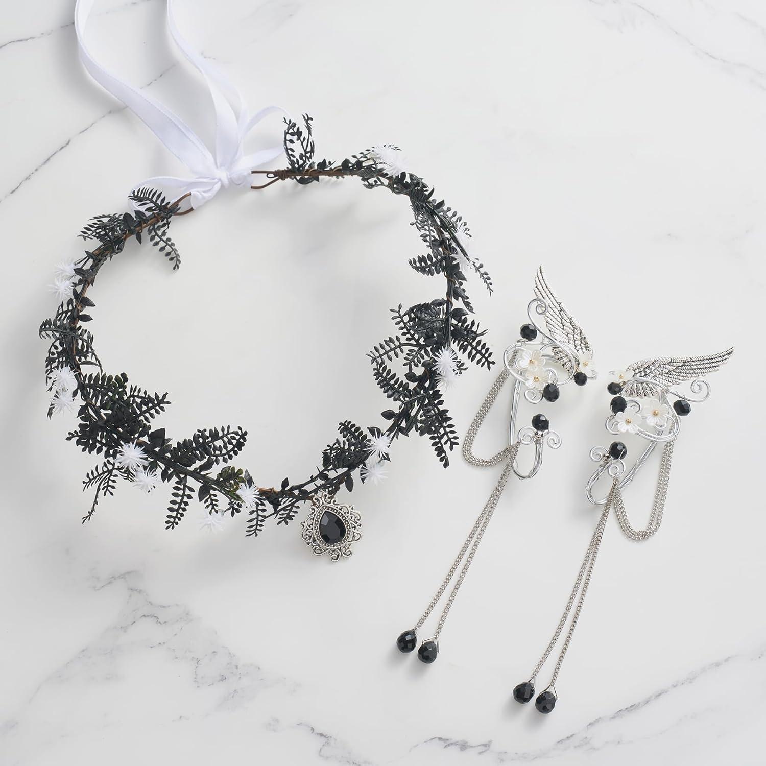 ♠High Quality: Handmade from mixed metal and crystal, the earrings of the fairy headpiece have metal wings and embellished with flowers and small beads, making you look like a fairy.