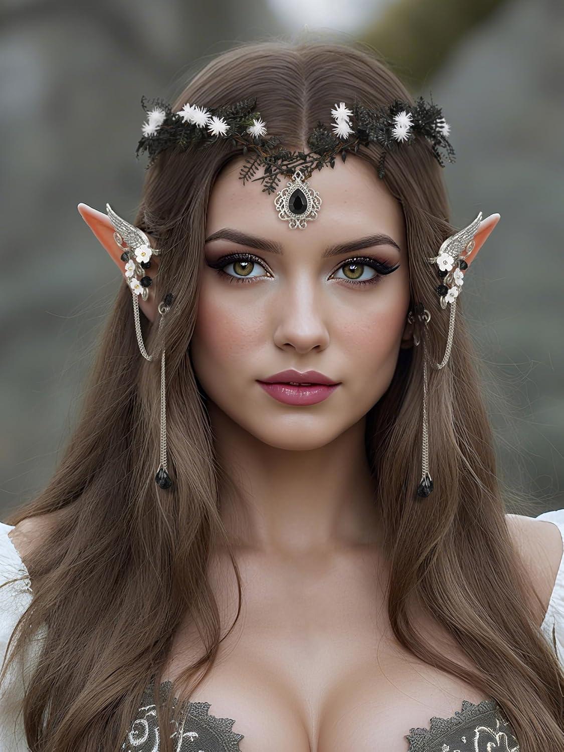 ♠Easy To Use: Exquisite elf ear cuffs no need to pierce your ears or glue latex earrings to your skin, easy to wear and adjust and comfortable to wear. The forest elf headpiece ties with ribbons at the back to make it perfectly adjustable and will stay in place during your event. one size fit all.