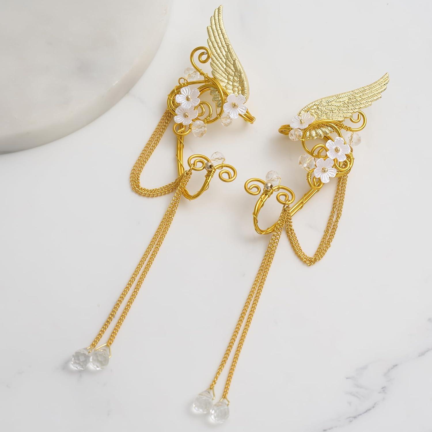 ♠High Quality: Handmade from mixed metal and crystal, the earrings of the fairy headpiece have metal wings and embellished with flowers and small beads, making you look like a fairy.