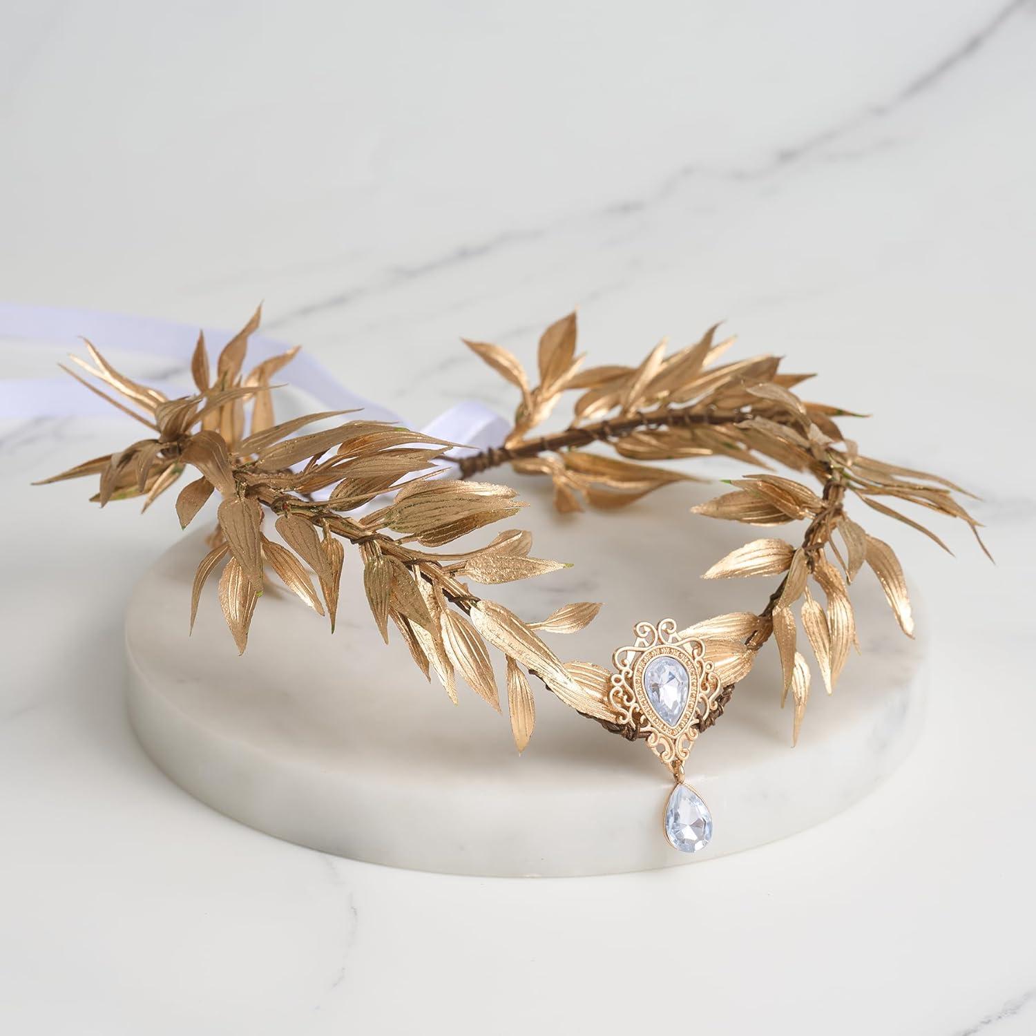 imageSWEETV Fairy Flower Hairband with Elf Ears Halloween Fairy Headpiece for Women Leaf Elf Circlet with Wings Cuff Earrings Leaf Hairband Set for Photoshoot Cosplay Party GoldLeafB one sizeGreenLeafA