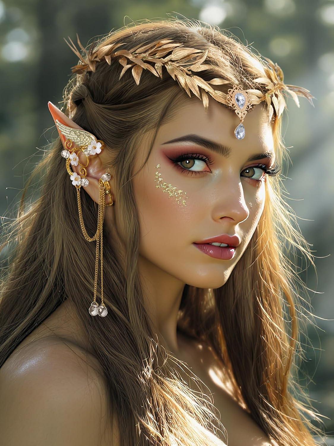 ♠Easy To Use: Exquisite elf ear cuffs no need to pierce your ears or glue latex earrings to your skin, easy to wear and adjust and comfortable to wear. The forest elf headpiece ties with ribbons at the back to make it perfectly adjustable and will stay in place during your event. one size fit all.