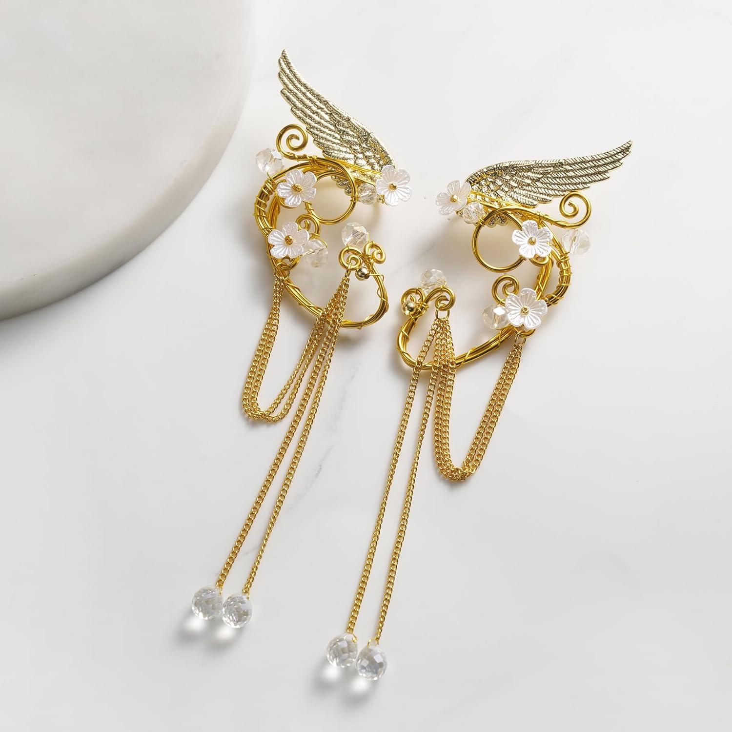 ♠High Quality: Handmade from mixed metal and crystal, the earrings of the fairy headpiece have metal wings and embellished with flowers and small beads, making you look like a fairy.