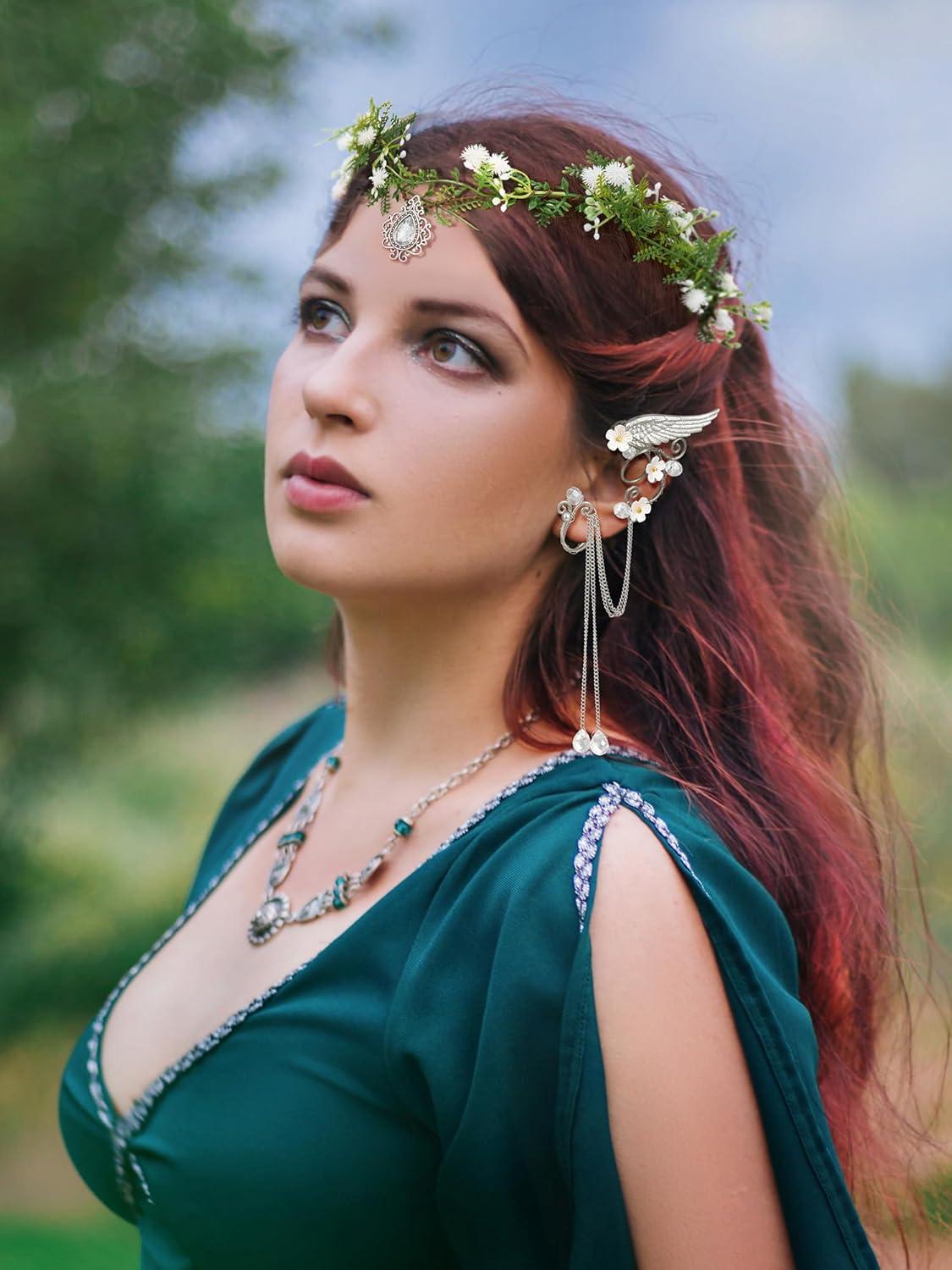 ♠Easy To Use: Exquisite elf ear cuffs no need to pierce your ears or glue latex earrings to your skin, easy to wear and adjust and comfortable to wear. The forest elf headpiece ties with ribbons at the back to make it perfectly adjustable and will stay in place during your event. one size fit all.
