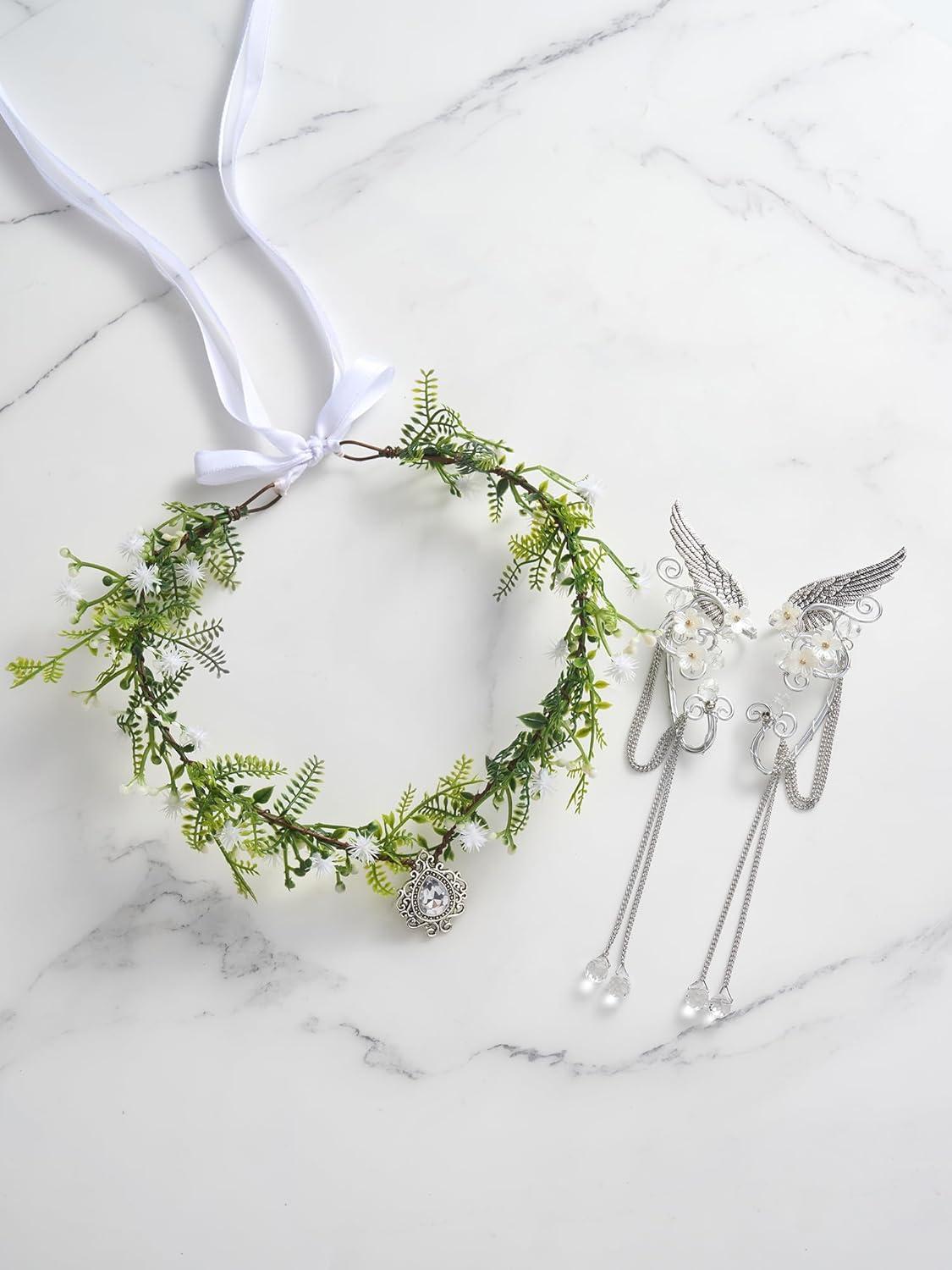♠High Quality: Handmade from mixed metal and crystal, the earrings of the fairy headpiece have metal wings and embellished with flowers and small beads, making you look like a fairy.