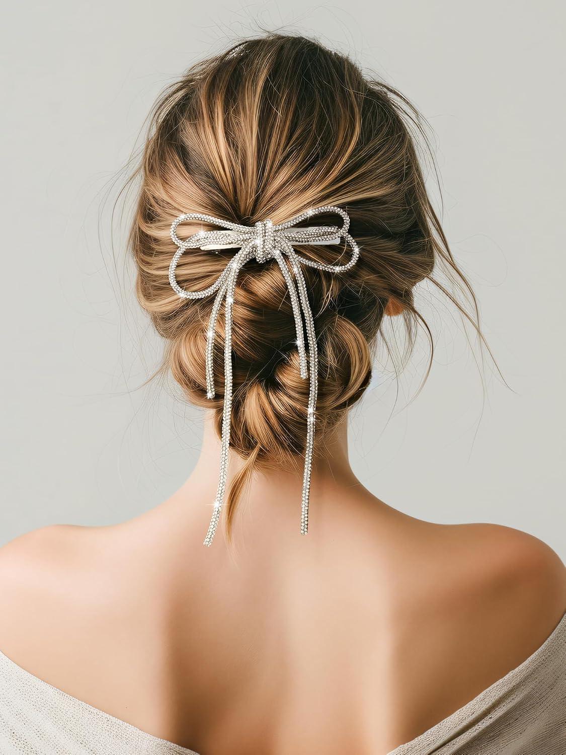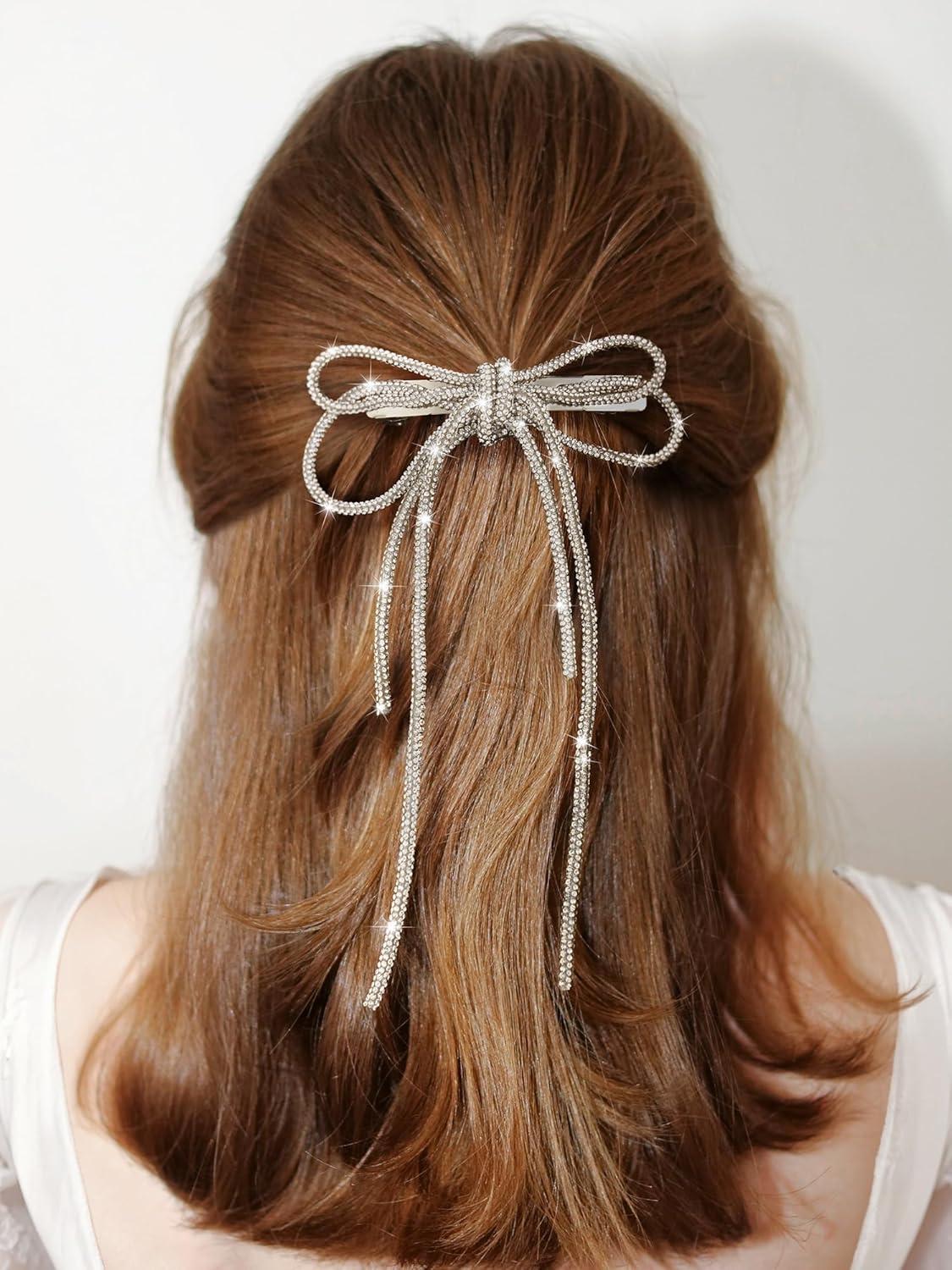 🎀Wide Applications: These elegant sparkle hair accessories suitable for wearing at any parties, wedding, ceremony, dating, concert or at daily life. It comes with gift box, also a perfect gift for your friends, lover, girlfriend, families, etc.🌟The product will wrinkle during transportation, when you receive the hair clip, you can stretch the rope of the hair clip and let it sit for 30 minutes, it will be a perfect hair clip.