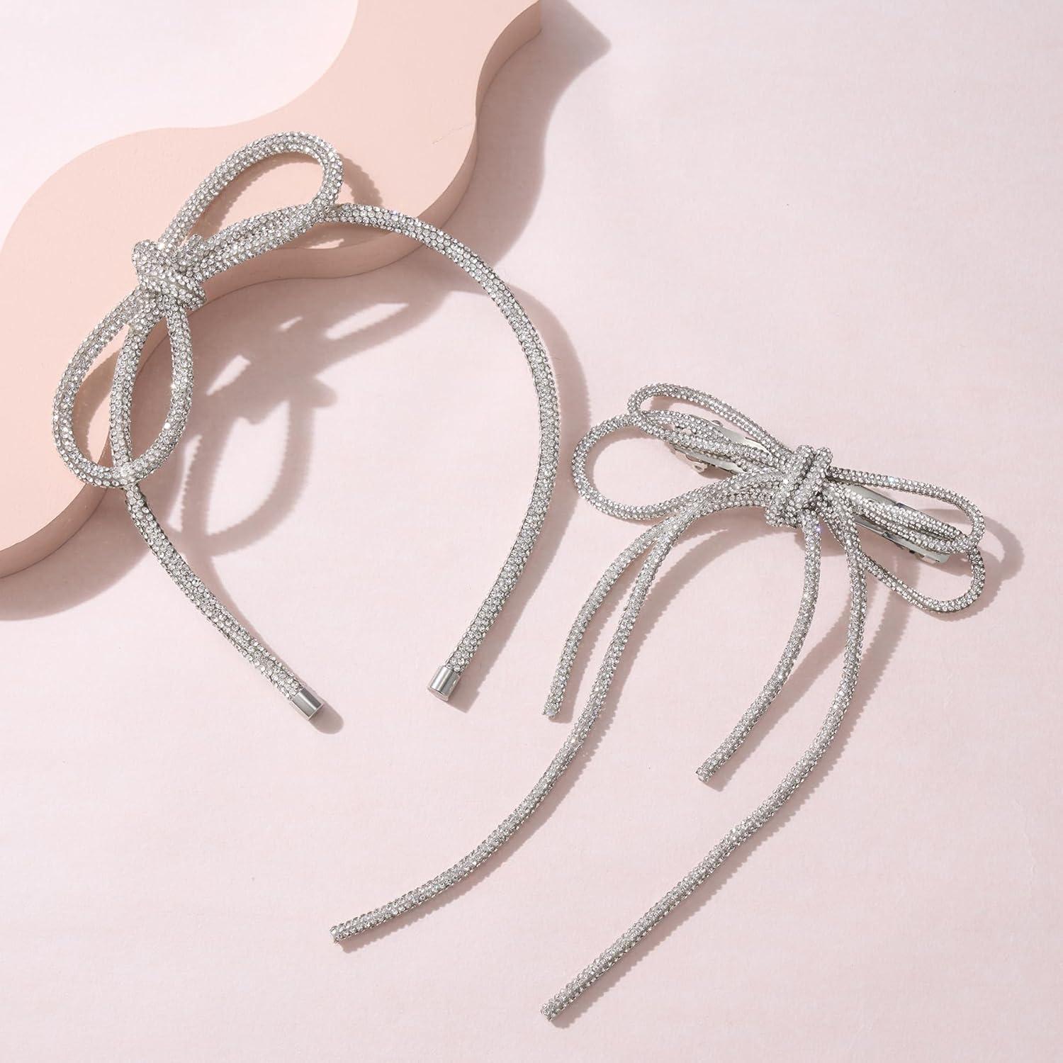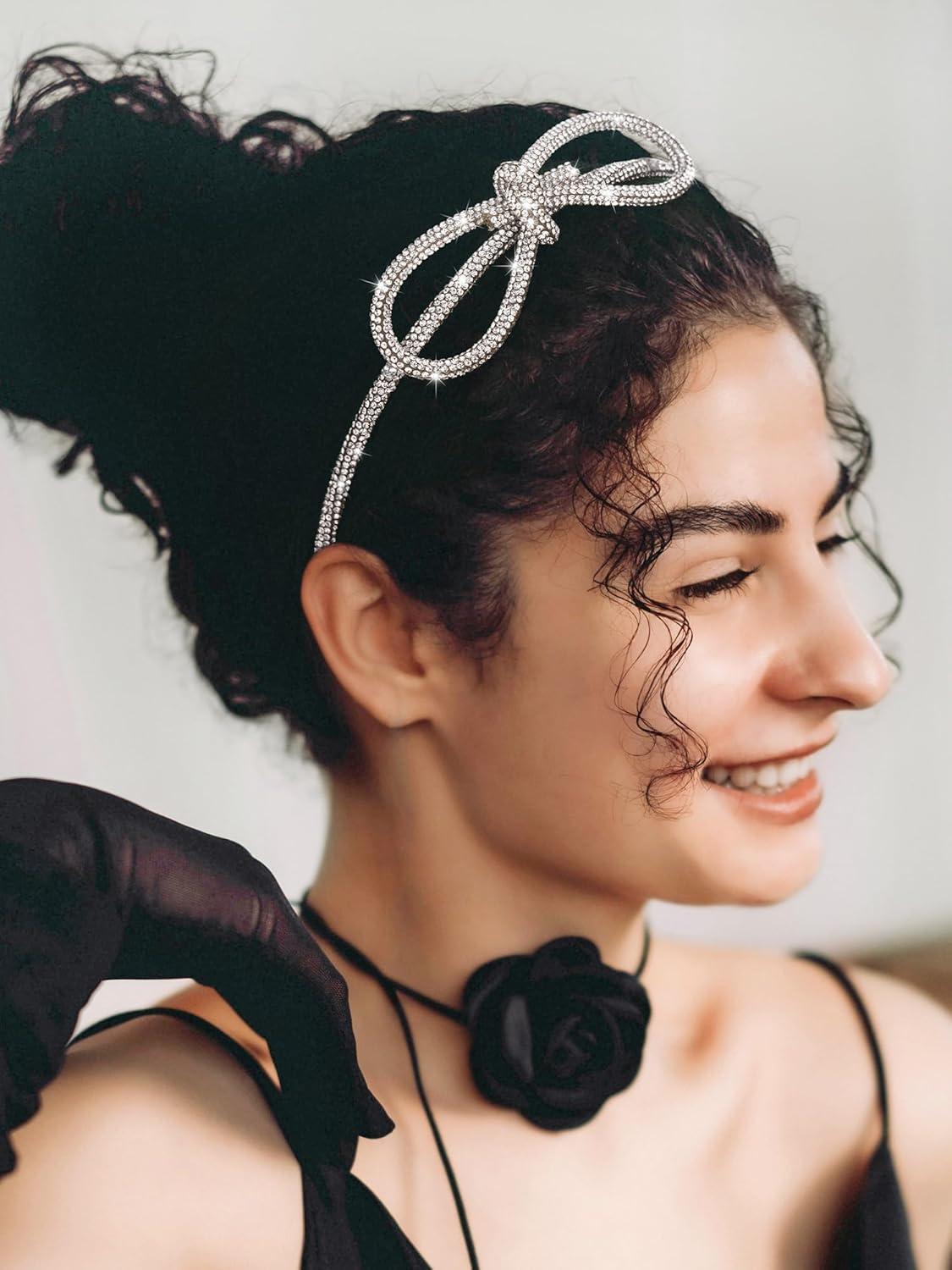 🎀Package content: you will obtain 1 pieces of bow hair clip, and 1 pieces of rhinestone headband.You can choose which you like to wear according to your style.